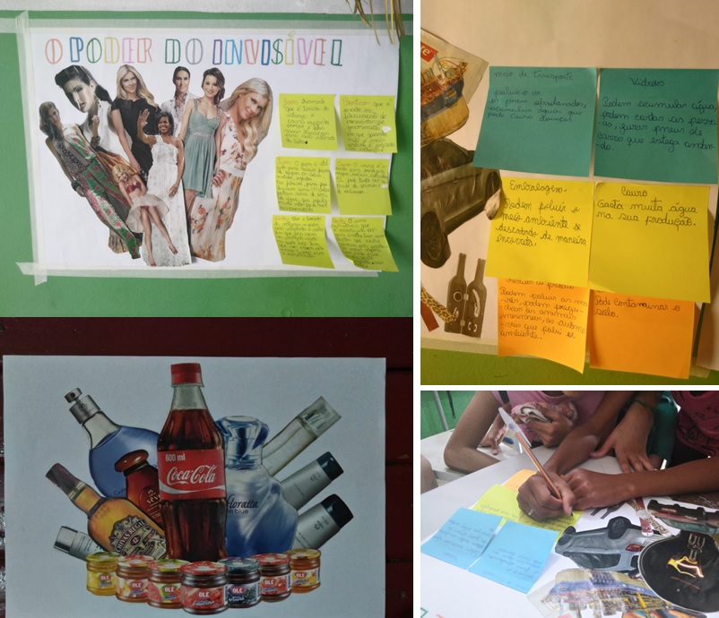 Atividade desenvolvida em sala de aula; alunos produziam painéis que discutiam o tema da preservação ambiental. Objetivo é transformar o trabalho em arte digital